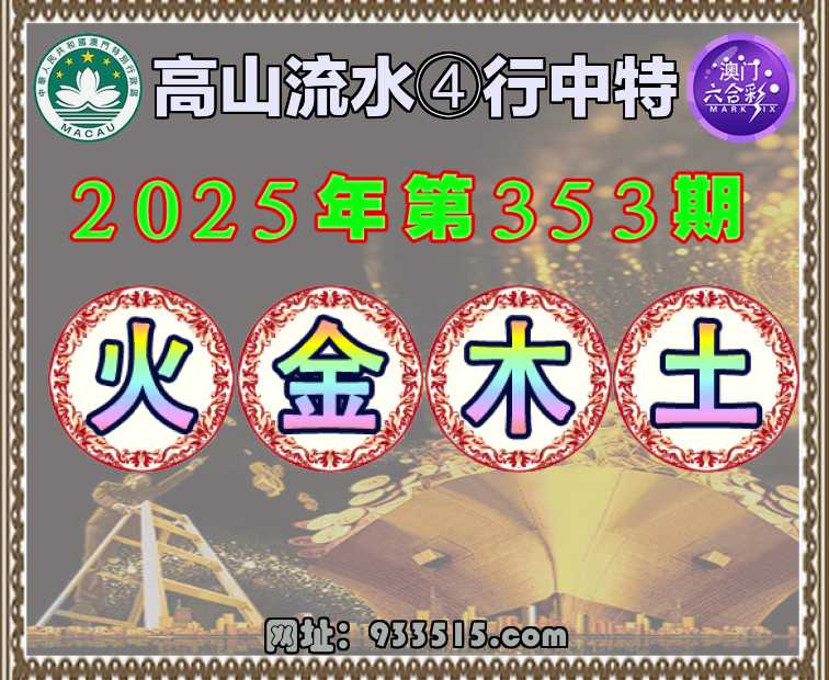 353期:〖高山流水〗 🧏‍♀️④行中特🧏‍♀️【.金.木.土】开:火01